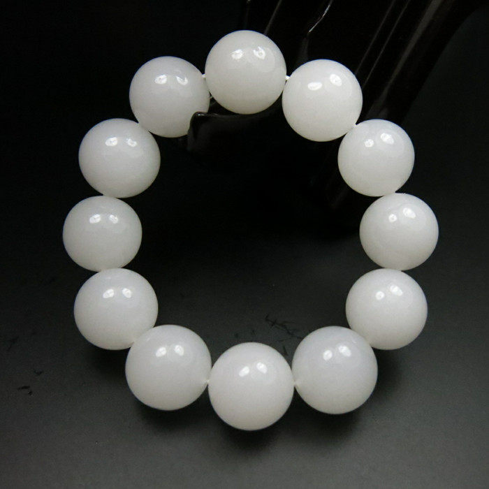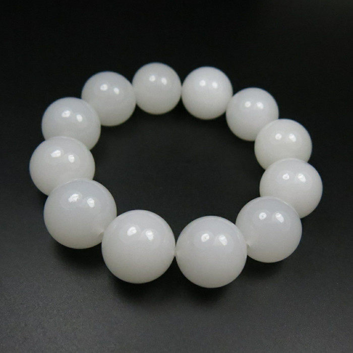 和田玉手链新疆昆仑白玉圆珠手链14-18mm手串男款