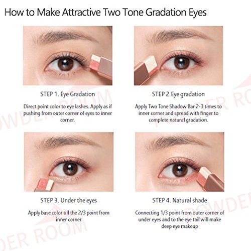 1. Easy and Quick Two Tone Blending / Perfect combination of point color that naturally tints the skin and shimmer lighting pearl base that illuminates skin! Two Tone Shadow Stick expresses even more attractive eye makeup with Two Tone Gradation .