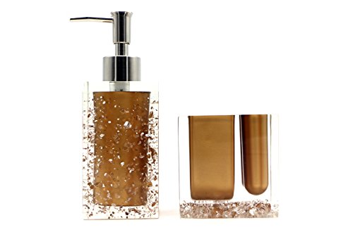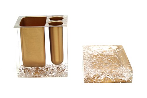 Hot San Resin 5 Pieces Bathroom Accessory Set - Ice Crystal In Gold Design Ensemble,Bathroom Vanities,Home Decor
