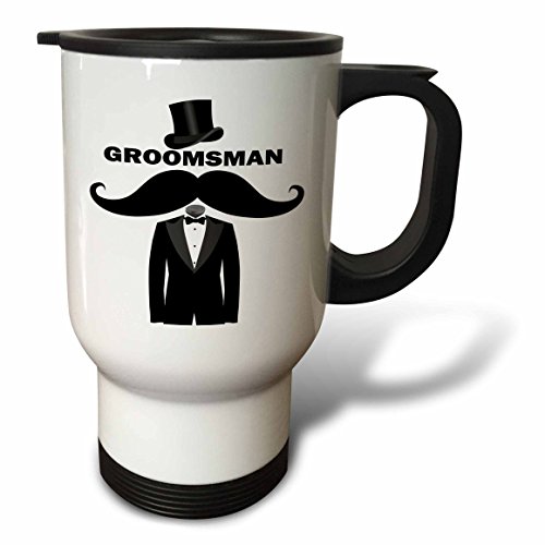 3dRose tm_212953_1 "Groomsman with Top Hat Mustache & tuxedo Stainless Steel" Travel Mug, 14 oz, Natural
