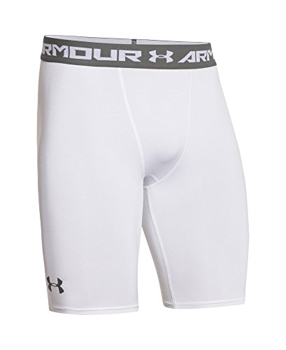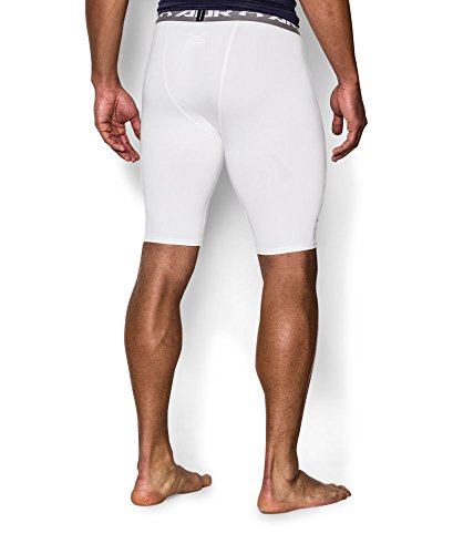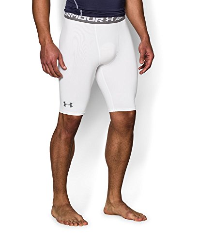 Under Armour Men's HeatGear Armour Compression Shorts – Long, White/Graphite, X-Large