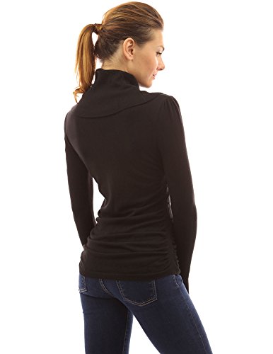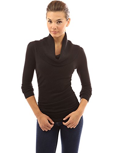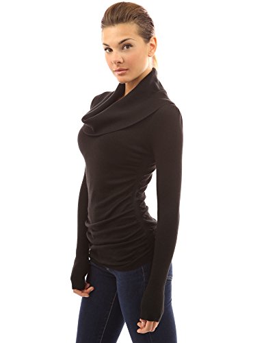 PattyBoutik Cowl Neck Long Sleeve Ruched Sides Stretch Pullover Blouse Tunic Sweater. Model in pictures is 5 feet 8 inches (173cm) tall.
