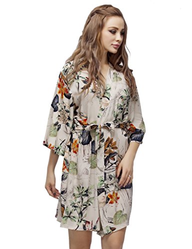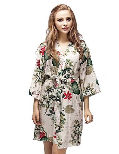 Skyfitting Women's Kimono Robe, Short Length Cotton Bridesmaid Robes