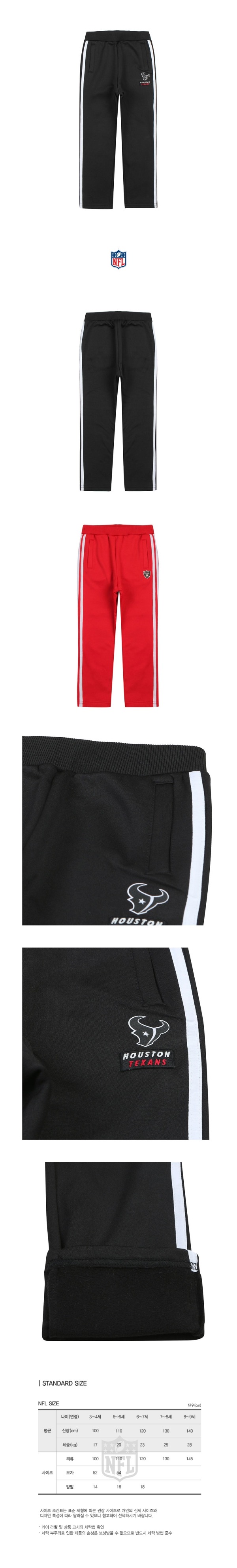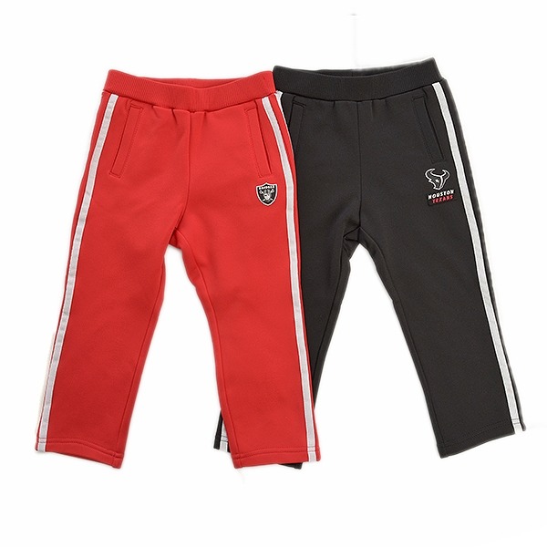 양쪽에 테잎 두줄 포인트를 준 폴리져지 기모 스판 소재의 트레이닝 팬츠.앞 팀 마크 나염으로 원포인트를 줌.J07, T07과 코디