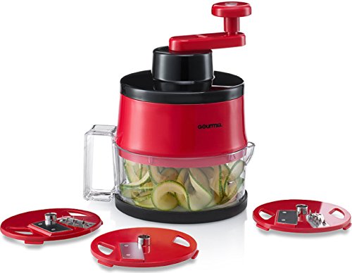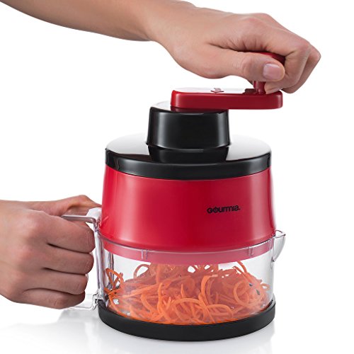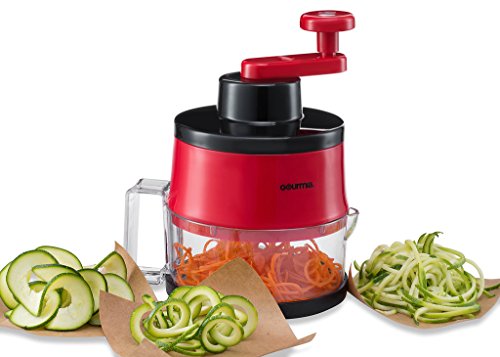 Gourmia GSS9210 Spiral Slicer Vegetable Spiralizer Includes 3 Interchangeable Slicing Blades Great for Veggie Spaghetti, Pasta, Salad, Potatoes & More Striking Red Finish, BPA free