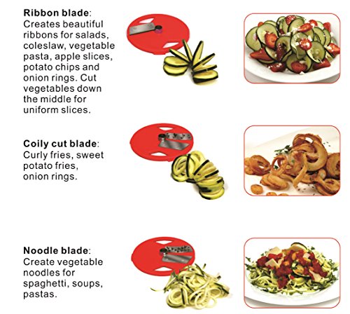 - MULTIFUNCTION KITCHEN TOOL – 3 in 1 Veggie & Fruit Spiralizer Helps You Cut Ingredients Into Precise, Fancy Strips for Salad, Spaghetti, Pasta, Soup & More