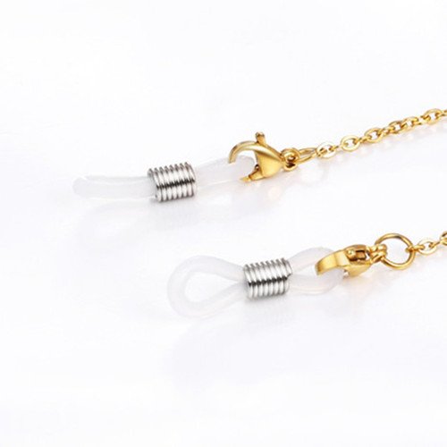 Binding : Eyewear Product Description Features - Eyeglass holder strap color: Gold (as shown in the pictures). - Eyeglasses string total length: 80cm/31.5in (including the rubber ends). - Glasses holder materials: stainless steel (chain), food-grade silicone (rubber loops). - 100% brand new and high quality eye glasses string holder reading glasses holder necklace. - Sunglass chain strap is suitable for women and girls to carry when reading or participating in outdoor activities. - Merits: sunglasses chain gold can stay attached to your eyeglasses very well, keep from sliding and free your hands. - Electroplating process: keeping this eyeglasses holder not easy to fade or tarnished, it will always be beautiful and attractive. - Delicate style: simple but elegant eyeglass strap chain can make you more fashionable not rigid when to wear eyeglasses. - Multiple function: this item not only can be a sunglass strap, but also a decoration or necklace by removing or adding the rubber ends.
