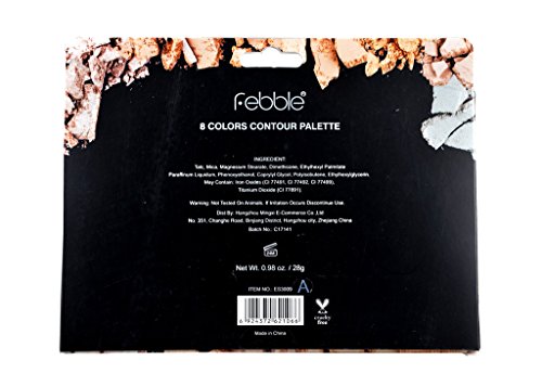 -. Binding : Misc. -. Brand : Febble -. Color : Gray -. Feature : 0.98oz/28g / Goes on smooth / For different occasions, casual, party, wedding / Provide total camouflage for almost any skin problem including blemishes / Made of high quality ingredients, this 8 colors contour palatte match your every look -. IsAdultProduct : 0 -. Label : Febble -. Manufacturer : Febble -. MPN : FB3009 -. PartNumber : FB3009 -. ProductGroup : Beauty -. ProductTypeName : BEAUTY -. Publisher : Febble -. Studio : Febble -. Title : Febble 8-Color Contour Palette