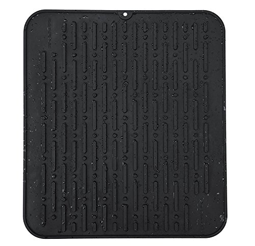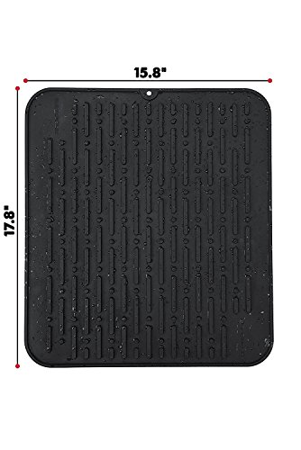 Extra Large Industrial Grade Silicone Dish Drying Mat Heat Trivet Pot Holder with Bonus Velcro Strap 17.8'' x 15.8" (Black)