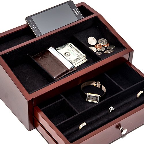 This is a great valet for your jewelry, cell phone, money & wallet.