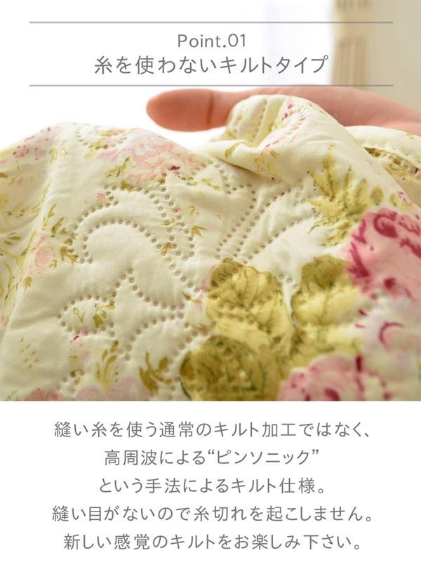 こたつの上掛けやベッドスプレッドとしてなど、いろいろな場面で活躍するマルチカバーです。糸を使わないキルトタイプだから、糸切れを起こしません。