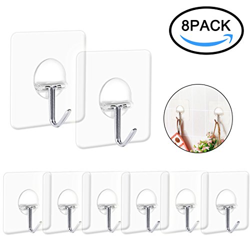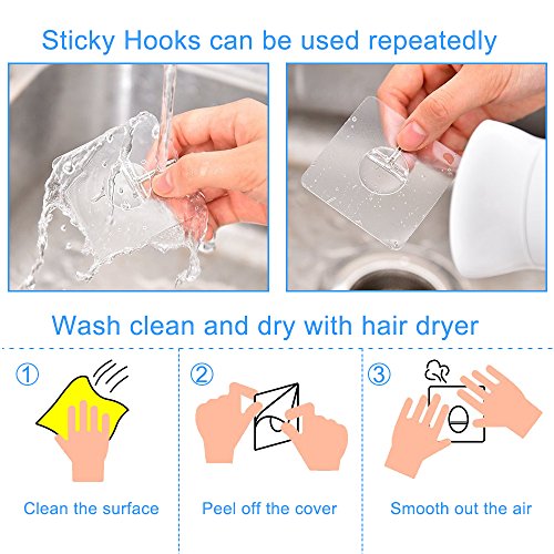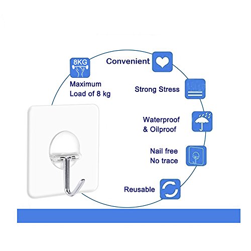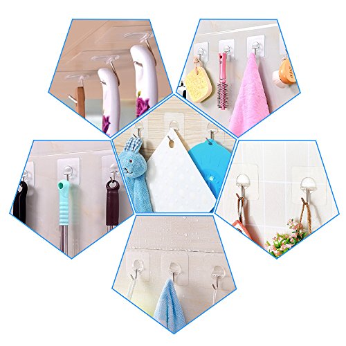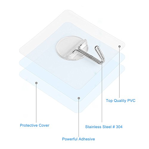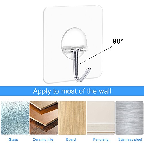 - GREAT PERFORMANCE: Heavy duty adhesive hooks with the unique transparent design makes it almost invisible, which is quite suitable for a nice home decoration; Removable wall hooks no tools required, easy to clean and reposition without surface damage