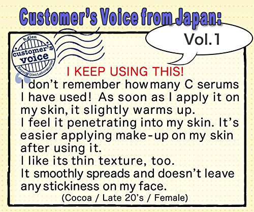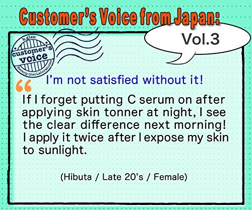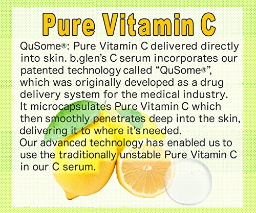 Revives Bounce: Advanced facial essence uniquely developed with a concentration of essential Vitamin C that restores the skin's strength and returns elasticity to skin. Diminishes Sag: Light weight, gentle and highly effective at reducing wrinkles and sagging skin. Smaller Pores: Pure Vitamin C that diligently works on the source of skin troubles by prompting regeneration in the skin that minimizes enlarged pores. Repairs and Reduces Acne: When applied to skin, a gentle warm sensation ensues as it is drawn to the back of the horny layer of the skin where it boosts the skin's circulation that helps clear acne and acne scars. Improves Luminosity: Balances the sebum that draws out transparency from the inside of the skin resulting in brighter and clearer skin. b.glen C serum: Ultra-micro encapsulated with our exclusive delivery technology, QuSome®, can penetrate into the skin at the source. Therefore, it Can reach! QuSome®: Pure Vitamin C delivered directly into skin. b.glen's C serum incorporates our patented technology called "QuSome®" , which was originally developed as a drug delivery system for the medical industry. It microcapsulates Pure Vitamin C which then smoothly penetrates deep into the skin, delivering it to where it's needed. Our advanced technology has enabled us to use the traditionally unstable Pure Vitamin C in our C serum. More Unique Features: Warm Sensation - You'll be surprised when you apply C serum on your skin for the first time. It improves the blood circulation and gives you a slight warm feeling. Airless Nozzle & Aluminum Barrier Tube - To maintain delicate ingredients in the freshest state, b.glen's C Serum utilizes an Airless Nozzle, which prevents air and bacteria from penetrating into the tube. Additionally, an aluminum barrier tube is used to prevent light from deteriorating the contents.Feature