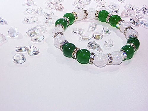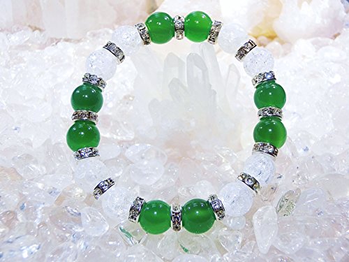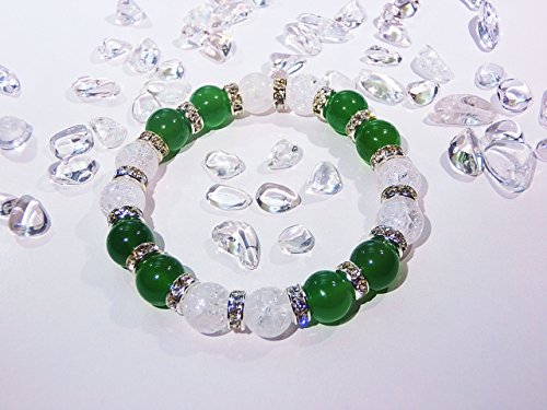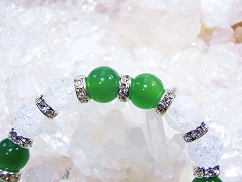 가노우석∞ 천연석 자 흉내 보석 【 건강운 / Snow Crystal 】그린 아게―토 크랙 수정 천연석 【AAA】 【 파워 스톤 팔찌 레이디스 M 】 가정운 정화 수정 가노우석 녹마노 그린