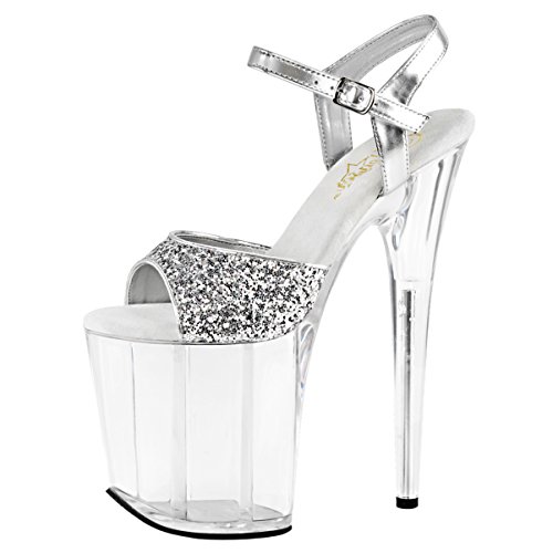 Womens Platform High Heels Silver Glitter Sandals Clear Shoes 8 Inch Heels