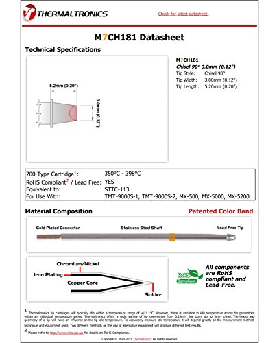 Thermaltronics M7CH181 Chisel 90deg 3.0mm (0.12") interchangeable for Metcal STTC-113