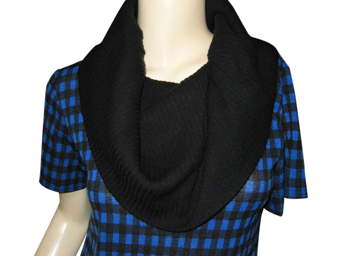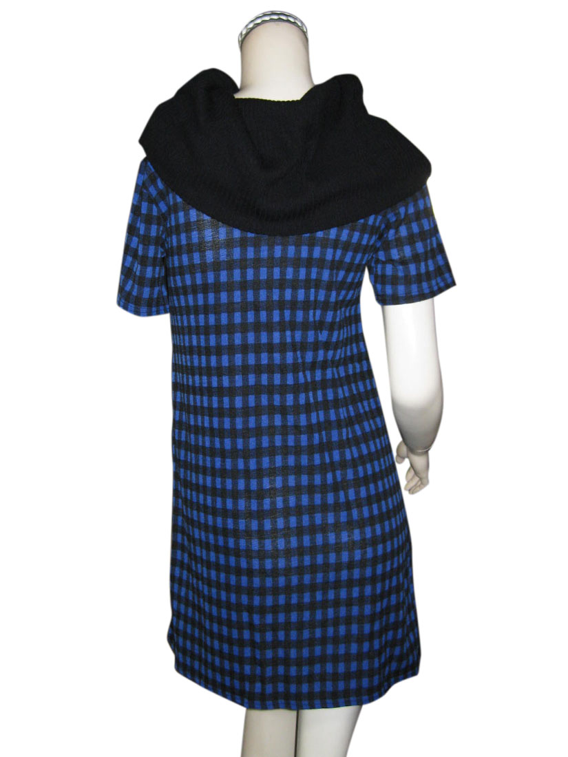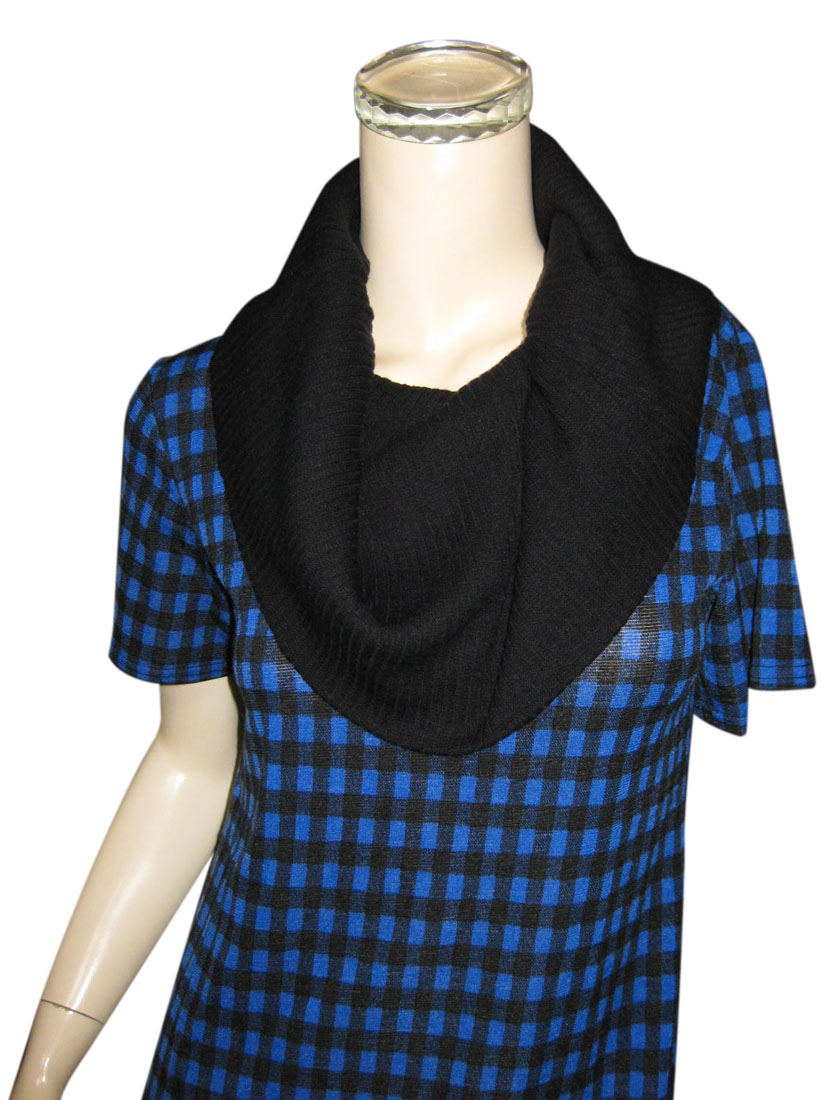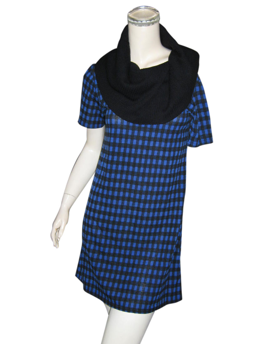 リブ編みの大きなタートル部分と、ブルー×ブラックのチェック柄が目をひくワンピース♪
