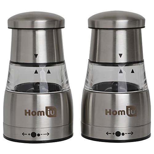 Homiu Manual Stainless Steel Salt & Pepper Grinders Mill Set 2 Pcs Professional Quality Brushed Stainless Steel Mills with Adjustable Ceramic Rotor - Elegant Manual Shakers, Ergonomic Design