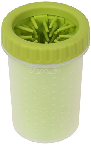 The Dexas MudBuster is a new, innovative and easy way to rinse your dog’s dirty or muddy paws, before they track it all over the house! Using the MudBuster is easy: muddy paws go in, clean paws come out! To use, add a little water to the base of the Mud Buster. Then, insert the muddy paw, do the twist, dab the paw dry, and repeat for 3 more feet! The Mud Buster features an array of soft, gentle, thick silicone bristles inside an easy-to-grip tumbler. Designed to be gentle on your dog's paw, the silicone bristles will gently loosen mud and dirt, keeping the mess in the MudBuster and not in your home or car. The Mud Buster is great for trips to the park, hiking, running or even playing outside. The Large MudBuster is specially sized for large and extra large sized breeds. BPA free! In addition to grooming tools, Dexas carries a large assortment of Petware including the popular Popware for Pets collection. The MudBuster is a patented product: Patent No. D799,126, US and Foreign Patents Pending.Feature