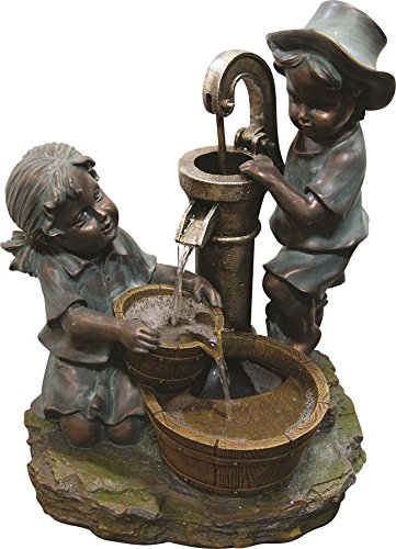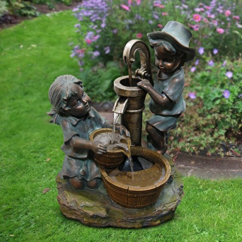 Alpine Polyresin Boy and Girl Fetching Water Stone