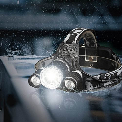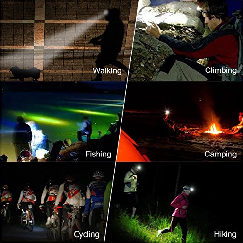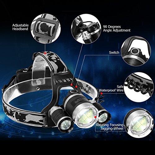 - ☀Powerful&Lightweight LED Headlamp with 6000 Lumens: 1T6+2R5 bulbs deliver 6000 lumens, which gives you the powerful illumination up to 100,000 hours,helping people navigate in the dark.The most unique function is that it has a powerful energy, in the case of a full charge, head lamp can stay 4 - 7 hours for use