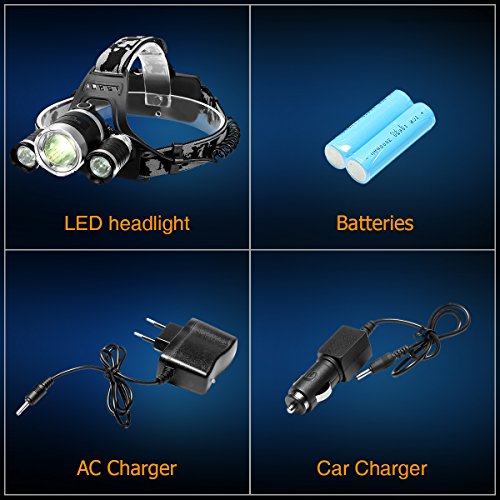 - ☀2 Charging Ways:There are 2 chargers as light accessories in this headlamp package. You can charge your headlamp in your car with the car charger while you can charge it on the wall with the AC charger