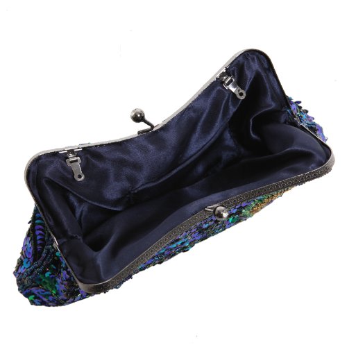- Feature : A gorgeous and glamorous evening handbag with a kiss-lock top closure and a dazzling array of sequins and beads arranged into a peacock feather design. / Use the fabric-lined interior of this fashion mini bag to stow small essentials like keys, ID, lipstick, and a cell phone. / This sequined fashion purse can be carried as a clutch, or you can attach either the short chain handle or the long chain shoulder strap to carry this evening bag on your arm. / **Official MG Collection® product by MyGift® features signature keychain charm, dust bag, and protective gift box** / Approximate Dimensions: Exterior - 10.1" W X 5" H X 1.3" D; Interior - 9.9" W X 4.8" H X 1.1" D; Short Chain Handle - 7.8" handle drop; Long Chain Shoulder Strap - 23" shoulder drop.
