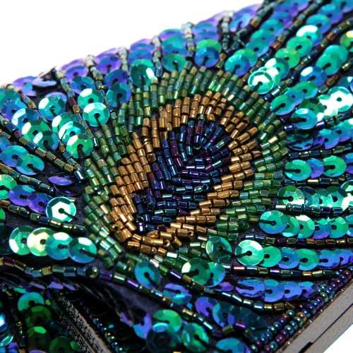 - Title : MG Collection Hand Beaded Sequined Peacock Design Green Purse Evening Bag
