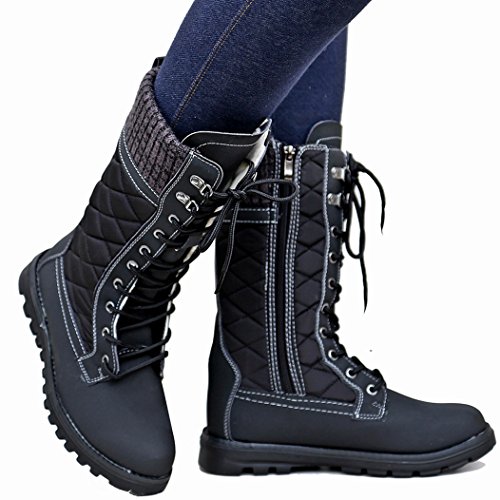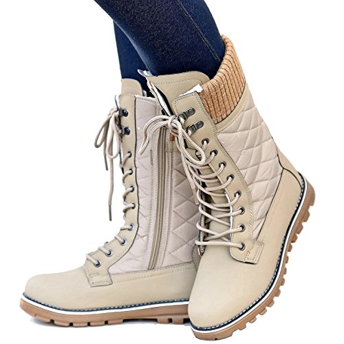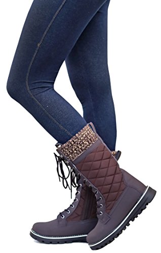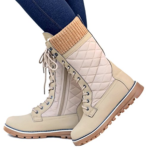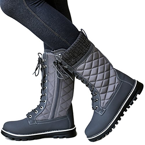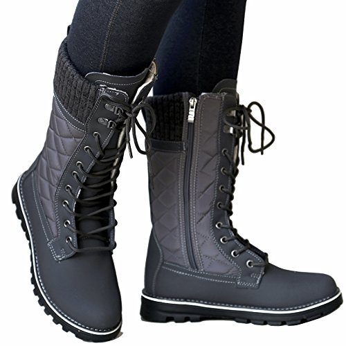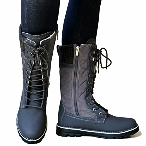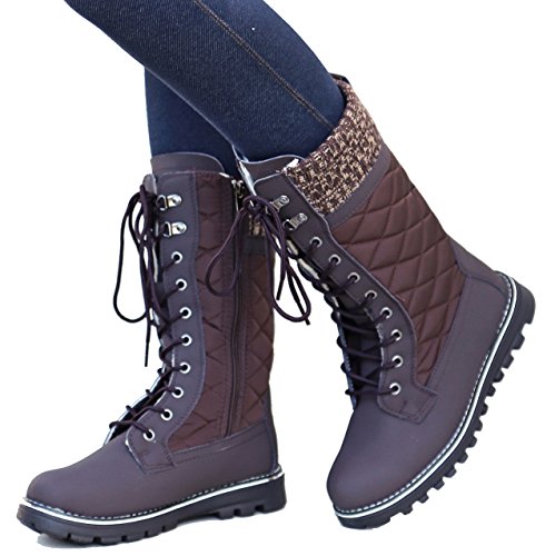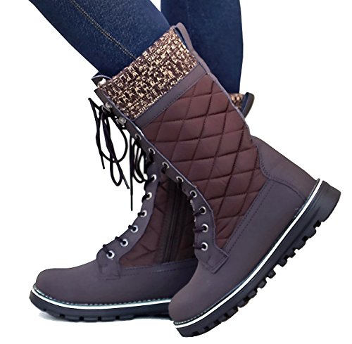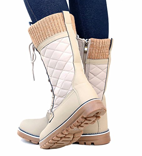Refresh Women RPO Lace Up Quilted Sweater Top Faux Fur Snow Boots