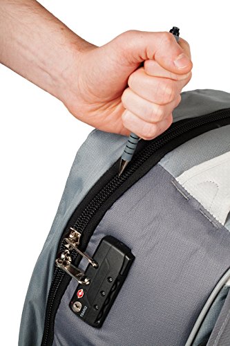 -. Feature : Made of anti-slash fabric to resist tampering and theft / Integrated, retractable cable lock allows bag to be locked to any stationary object / Anti-puncture zippers can't be pried open / TSA-approved zipper locks / Padded laptop compartment; lumbar support for maximum comfort