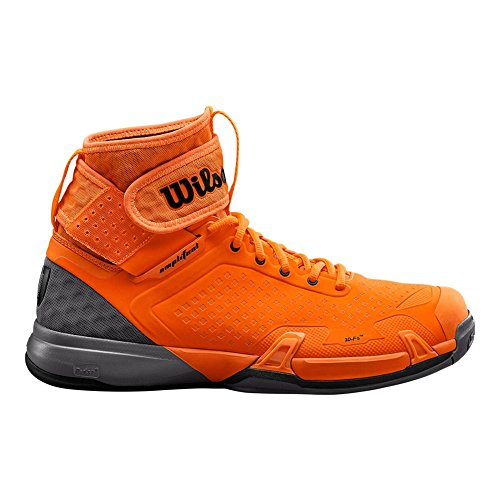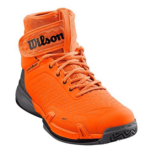 Studio : WILSON Publisher : WILSON Binding : Apparel Product Description Come together for a win on court in the Wilson Unisex Amplifeel Tennis Shoes in Shock Orange and Magnet! This shoe is the perfect mix of traditional tennis footwear performance and modern on-court trends! These shoes feature the classic Pro Torque Chassis (PTC) Light that accentuates your arch and helps increase your speed and flexibility during intense rallies. The outer of the upper is made out of Endofit material that provides durability and protection from the elements. This technology, mixed with the Duralast technology will keep the upper and the toebox fresh for years. What makes this shoe stand out from its competitors though is the strap on the top of the shoe. The Amplifeel strap with a traditional Wilson logo foremost increase support to accommodate the natural explosion that the human body has. Not only do these shoes feature a unique and supportive outer structure, Endofit and Skinguard technology give the inner structure value that a lot of other shoes don`t have. Look out for these shoes to be worn on courts during many low and high level matches alike. 0