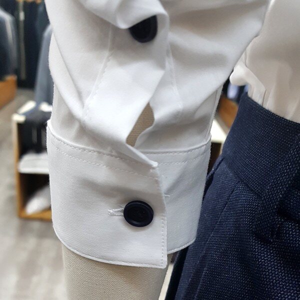 매끈한소재의 면 폴리,우레탄 혼방소재로 편안하게 창용하실수있으며 소매접어서 입으셔도 잘 어울리는셔츠 캐쥬얼 자켓이랑 진한 곤색 면바지랑 입으시면 깔끔한 느낌을 줍니다