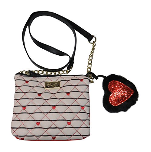 Betsey Johnson Multi Heart Crossbody Black/White/Red Striped