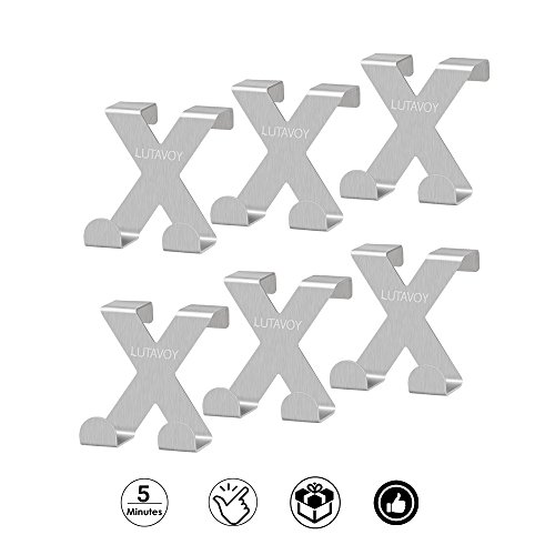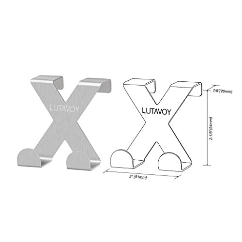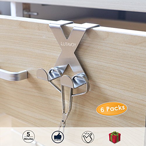 -. Feature : 6 Packs Hooks-LUTAVOY CH01 Over Cabinet Double Hooks Set of 6-Made of stainless steel,a great organizer for a rented apartment,portable and lightweight when camping or traveling just carry it. / Great Space Saver-Store towel or gloves within reach at kitchen,hanging bathrobe or clothes in powder room, put keys or headphones on your office drawer... A must have item in a commercial or residential place / 1 Seconds to Use -No drilling,no stickers,reuse it anywhere.Approx.2-1/8"X7/8"X2",Fits Cabinet 0.4" to 0.78" thick.Please measure your drawer before order it / All in 1 item-Do you know it can be a Business Card Holder for Counter, Table or Desktop? Approx.Capacity 50 Cards.Simple and Cool display business cards on your desktop.Open design can fit for almost any size business cards / 3 Designs to Pick -LUTAVOY offer TYPE-X(Model-CH01),TYPE-H(Model-03) and Window (Model-03)for you to choose. Order it as a creative gift to your loved one