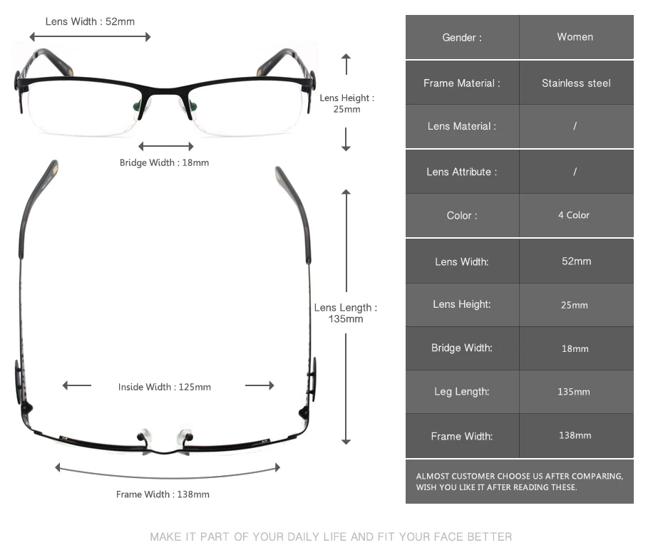 Temple Material:Stainless Steel