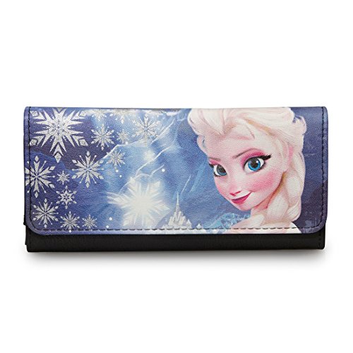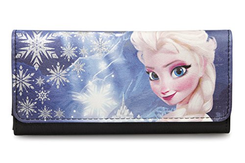 This Frozen Elsa Wallet features Elsa Photo on the front of the wallet. This is a checkbook style wallet with faux leather lining. Front magnetic botton closure. Contains an ID window and plenty of credit card slots inside. This is a wallet for all Frozen fans! Also check out the matching Elsa tote bag!Feature