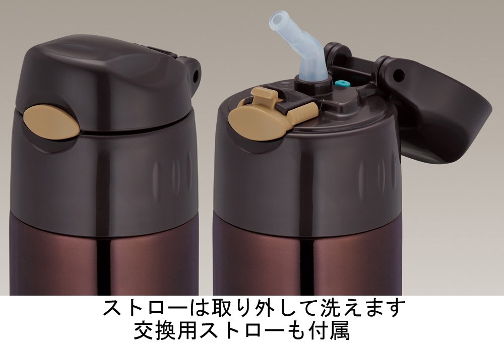 THERMOS vacuum insulation straw bottle [one-touch open type] 0.36L Brown FFI-401 BW