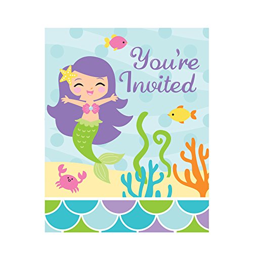 - Happy mermaid with purple hair frolics in the ocean; fill with goodies and treats for party guests