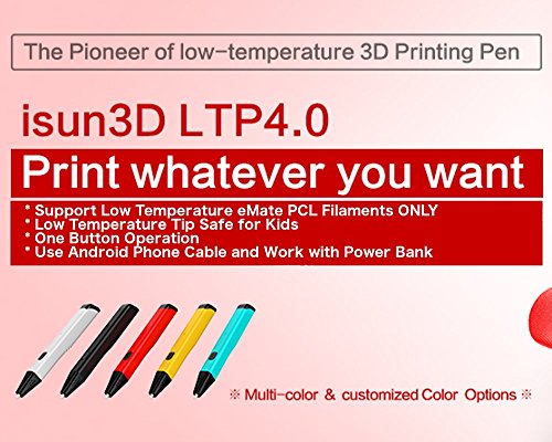 3D Printing Pen, Low Temperature 3D Pen Using eMate Moldable PCL Filament, Safest 3D Pen, Slim Design, Easy 1 Button Operation, LTP 4.0 2017 Gen