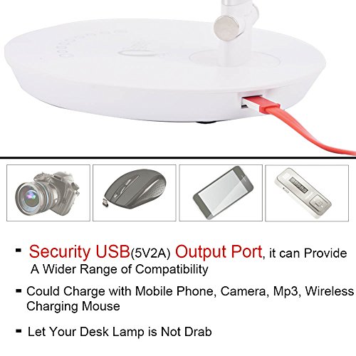 ✅ MULTIFUNCTIONAL – The lamp’s memory function retains preset settings and reboots accordingly. Built-in USB (5V/2A) Port for charging the electrical (mobile phone, smart watches, MP3, wireless mouse, camera and so on). Low voltage protection function, more safety