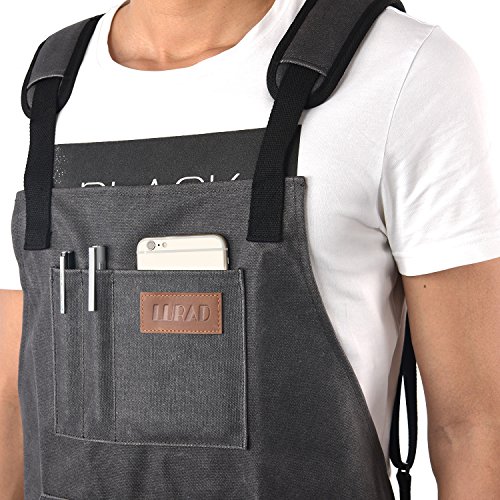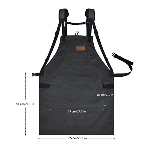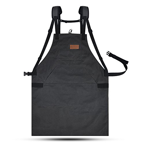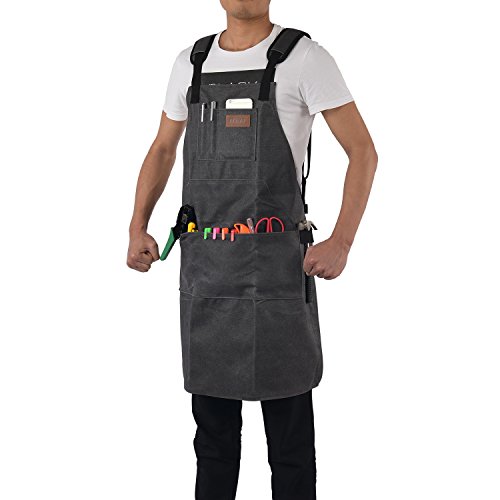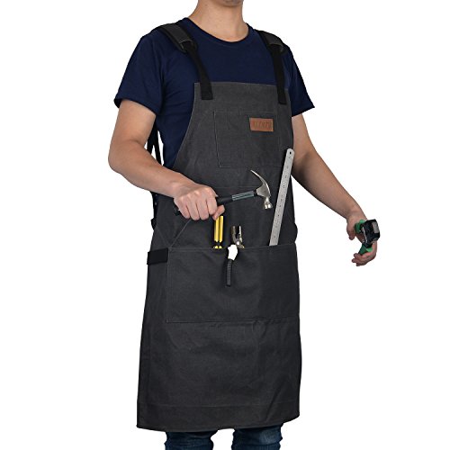 LURAD Tool Apron Waterproof with Waist Adjustments Padded Shoulder Strap Workshop Apron with Pockets for Men & Women-Black