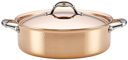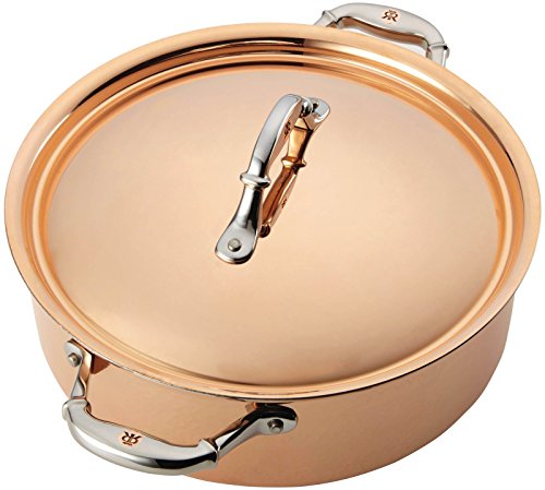 Gorgeous and generously sized, the artisanal Ruffoni Symphonia Cupra 7-Quart Covered Braiser unites the legacy of Italian copper craftsmanship with culinary performance for the quintessential gourmet cookware. For generations to come, the hand-hammered, jewel-like copper exterior of Symphonia Cupra will enhance the aesthetic of any home and kitchen while providing tasteful excellence. This heirloom piece delivers impeccable cooktop performance by means of a copper-wrapped aluminum core for extraordinary heat conduction and a bonded stainless steel interior to assure durability and effortless cleanup. Whether for classic beef bourguignon or braised ahi tuna with orange-olive tapenade, the braiser is the perfect instrument to help prepare and deliver incomparable gastronomic experiences. Presenting beautifully shaped, mirror-finished cast stainless steel handles with stamped copper signets, the braiser is accompanied by a similarly adorned stainless steel lid. Oven safe to 450°F and suitable for all cooktops, except induction, this deluxe Ruffoni copper braiser is a beautiful addition to a home collection of Symphonia and Mini cookware to be treasured for a lifetime. Embark on ever-more-delectable culinary adventures with the ample and handsomely designed Ruffoni Symphonia Cupra 7-Quart Covered Braiser.