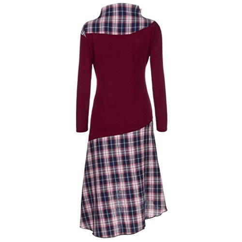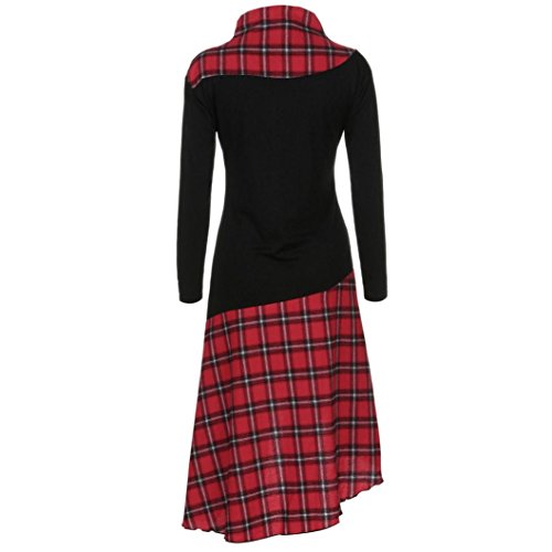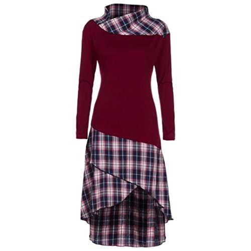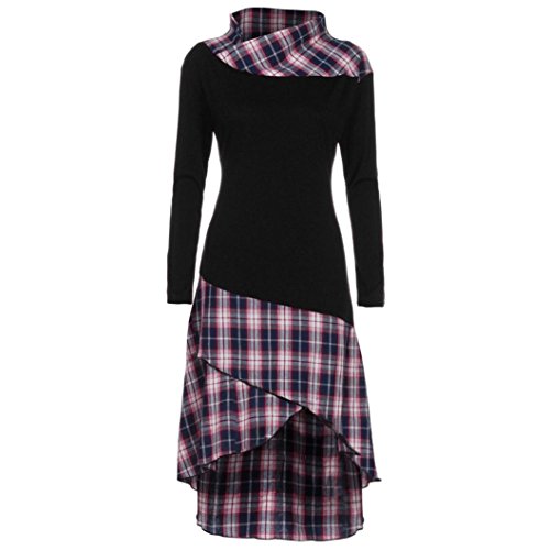 (ARINLA dress)/Accessories/Cold Weather Accessories/DIRECT FROM USA/ARINLA Womens High Neck Plaid Patchwork Long Sleeve Asymmetric Dresses