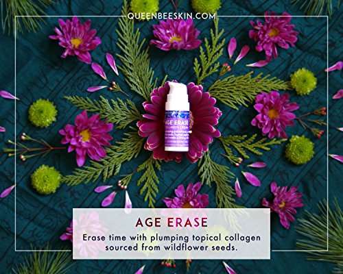 -. Binding : Misc. -. Brand : Queen Bee Organic Skin Care -. EAN : 0753640540626 -. Feature : Collagen Cream sourced from wildflowers / container holds .33 oz of product by volume or .6 oz by weight. watch Queenie talk: https://youtu.be/zF5VuUZFQts / In our study, 25 ladies tried Age Erase collagen cream for 90 days. We looked at elasticity and snap using a cutometer. he skin is lifted, stretched and then released. These deflections are optically recorded and evaluated. In our group we showed an improvement of 10% over the entire group. We noticed less sagging of skin and when asked 92% of them noticed an improvement in firmness and 72% noticed a reduction of facial sagging. -. IsAdultProduct : 0 -. Label : Queen Bee Organic Skin Care -. Manufacturer : Queen Bee Organic Skin Care -. MPN : age_erase_airless -. PackageQuantity : 1 -. PartNumber : age_erase_airless -. ProductGroup : Beauty -. ProductTypeName : BEAUTY -. Publisher : Queen Bee Organic Skin Care -. Studio : Queen Bee Organic Skin Care -. Title : Organic Collagen Cream Age Erase Queen Bee Skin Care Vegan sourced from wildflowers -. UPC : 753640540626