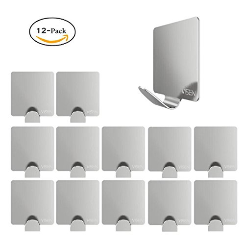 VISEN adhesive wall hanger towel hook for clothes coat hat key bath and headphones (Pack of 12 Hooks)