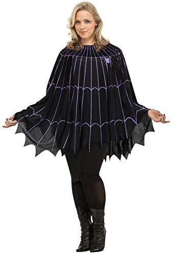 -. Brand : Fun World -. Color : Black,Purple -. Department : women -. Feature : What's Included: Poncho Black with Purple Glitter Spier Web Available Sizes: 16W/24W -. ProductGroup : Apparel -. ProductTypeName : ADULT_COSTUME -. Title : Spider Web Poncho Plus Size Costume Black/purple