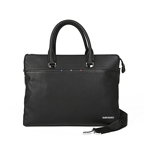 -. Feature : HIGH QUALITY MATERIAL:The Briefcase Is Made Of High Quality Luxury Soft Genuine Cow Leather, Durable Fabric Polyester Lining, Nylon Long Shoulder Strap,With Custom Hardware, Heavy-duty Zipper. Zipper Closure For Your Security. / STRUCTURE: Contains 2 Big Inner Compartments, 2 Cell Phone Pocket, 1 Inner Zipper Pocket, 1 Pocket Outside With Zipper Closure. This Lawyers Briefcase Easily Hold Your 12 inch Laptop, iPad, iPhone, A4 File, And Other Business Things. / DIMENSIONS: (L)14.17" x (W)2.37" x (H)11.02" inch. / SECURE & STYLISH Hand made by professional artisans. Can be used as lawyers briefcase, laptop bag, or hand carry functional briefcase. Classic design is perfect for business men. / ATTENETION: DONWORD is a Registered Trademark and our ONLY Authorized dealer is DONWORD. Please pay attention to avoid purchasing those COUNTERFEITS from other sellers, 100% genuine guarantee from DONWORD
