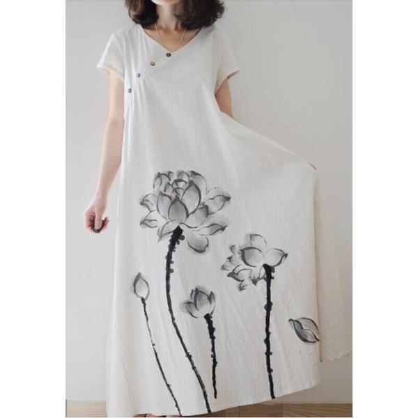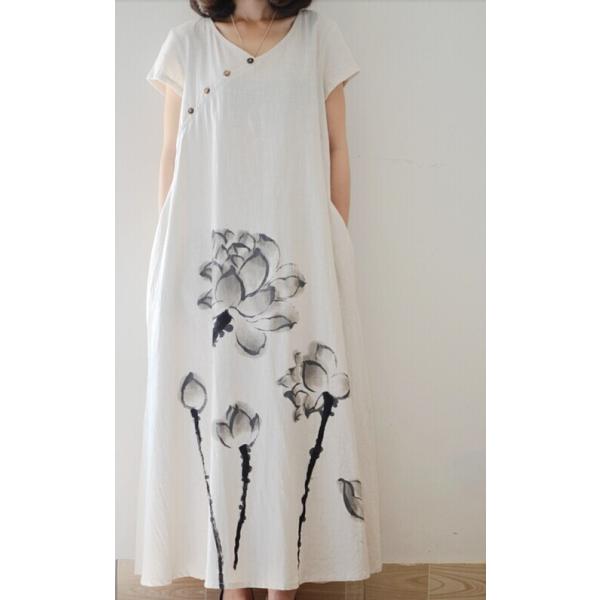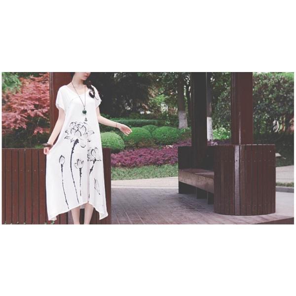 涼しげな綿麻素材を使用したシンプルなマキシ丈ワンピースです。