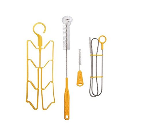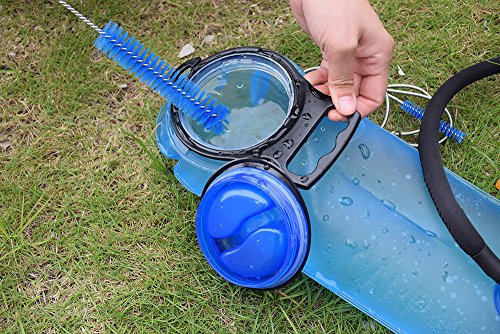 -. Feature : 4 in 1set for hydration bladder cleaning and drying----1* flexible snake brush, 1* smaller brush, 1* bigger brush and 1* collapsible frame. / Stainless Steel 304: Strong and Durable; Brush is straight and enduring / BIGGER BRUSH: used for water bladder cleaning; SMALLER BRUSH: perfect for bite valve mouthpiece cleaning; / FLEXIBLE SNAKE BRUSH: excellent for hose cleaning; designed to clean the whole water tube from start to end / COLLAPSIBLE FRAME: designed for bladder drying, can be squeezed together to fit inside the bladder and allow it to air dry, suitable for any brand bladder with Maximum mouth opening 4.7" and Minimum mouth opening 1.6".
