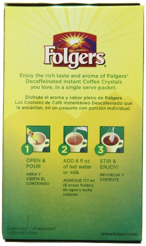 Folgers Classic Decaf Instant Coffee, Single Serve Packets, (Pack of 12)